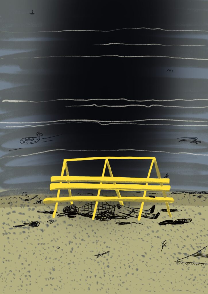 Räägitakse, et luuserid kõngevad kraavis. Mina aga olen sattunud kollase pingi alla, Stroomi ranna liivale. Ei tea, kas see teeb minust luuseri, üldiselt ma ei tunne ennast viletsusehunnikuna. Need olid ühed vahvad koksid, millega mind kostitati, kilk pole peast lahtunud. Olen täiega tongis. Mitte kuskilt ei valuta. Pole tahtmist kuskile minna. Kas see pole mitte õnn? Ärge muretsege, surnuks ma ei külmu, täna on üpris soe öö.