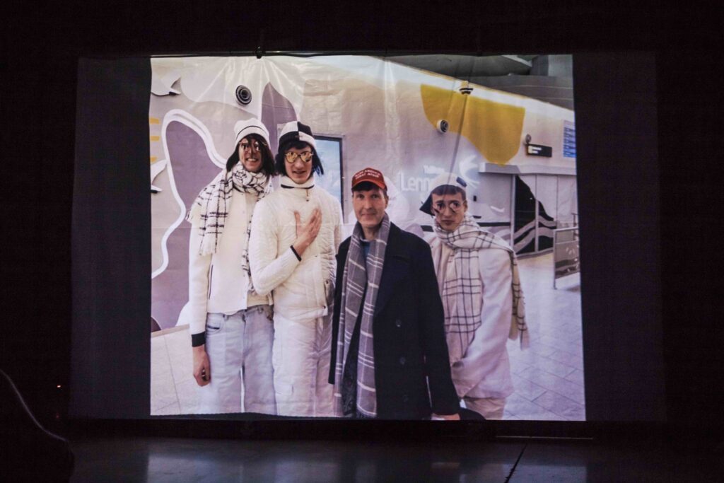 Kirjeldatu on ainult üks vimkadest, mille Liisa Saaremäeli lavastuse „Monoliit Estonia” trupp oma prooviprotsessi käigus ellu viis. Võtnud eesmärgiks töötada võimalikult palju proovisaalist väljas, viisid lavastuse ettevalmistused Von Krahli Teatri trupi (Markus Andreas Auling, Karl Birnbaum, Herman Pihlak ja Edgar Vunš) Martin Helmega Tallinna lennujaama ja sariprotestijaga Tammsaare parki, munitsipaalpolitseisse ja Pelgulinna piiritähise juurde. Vahetati kirju Karmel Killandiga ja võideti pseudo-influencer’i Limo Oueslati usaldus.