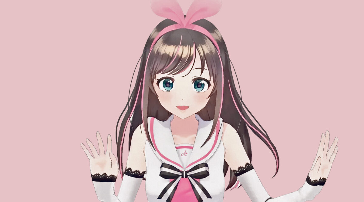 Esimene v-tuuber Kizuna AI pimestava valge tühjuse taustal. Kuvatõmmis kasutaja @AIChannel YouTube’i videost