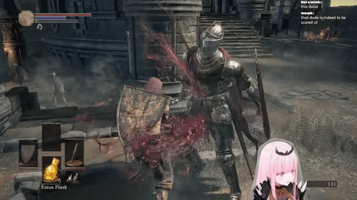 Kui avan YouTube’i, näen, et parasjagu teeb otseülekannet v-tuuber Mori Calliope, kes mängib „Dark Souls III”. Kogu ekraanil avaneb mängusisene lahing, all paremal räägib midagi Mori roosade juustega avatar ning samal ajal jookseb üleval paremal tabamatu kiirusega striimi vaatajate vestlus. Üks 3D-tegelane ühest universumist juhib teist 3D-tegelast teisest, pidades inimhäälset dialoogi vaikivate fännidega teisel pool kasutajanimesid. See on tüüpiline v-tuuberi loomingu vaatamise kogemus.