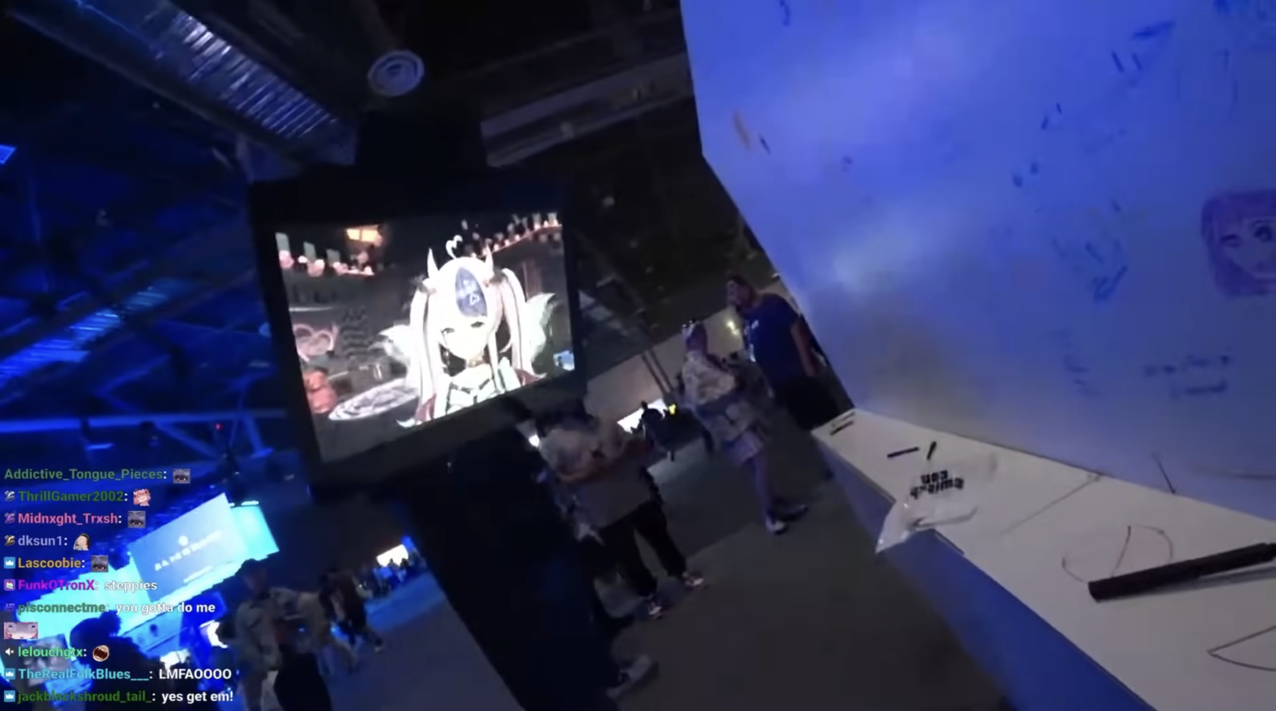 Virtuaalsete tegelaste kihistused Mori Calliope striimis. Kuvatõmmis kasutaja @MoriCalliope YouTube’i videost