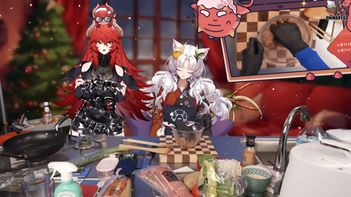 Hübriidreaalsuses toimuv kokandusstriim. Kuvatõmmis kasutaja @onigirien YouTube’i videost